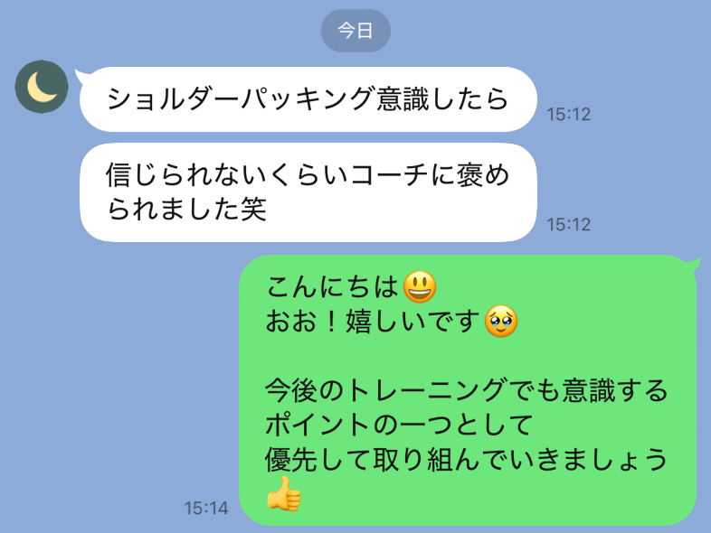 身体の使い方がすごく良くなりましたね!と褒められました!!」
